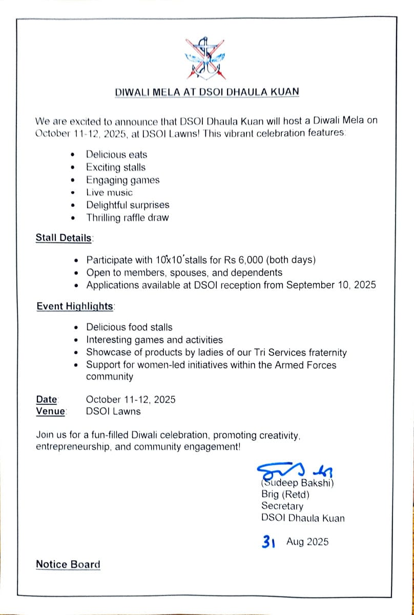 The biggest Defence Officers’ Institute not only of India but also of its kind in Asia. The objective of DSOI is to provide Social and recreational facilities to the officers of the Defence Services, both serving and retired and their families and offer combined officers mess facilities to them.
